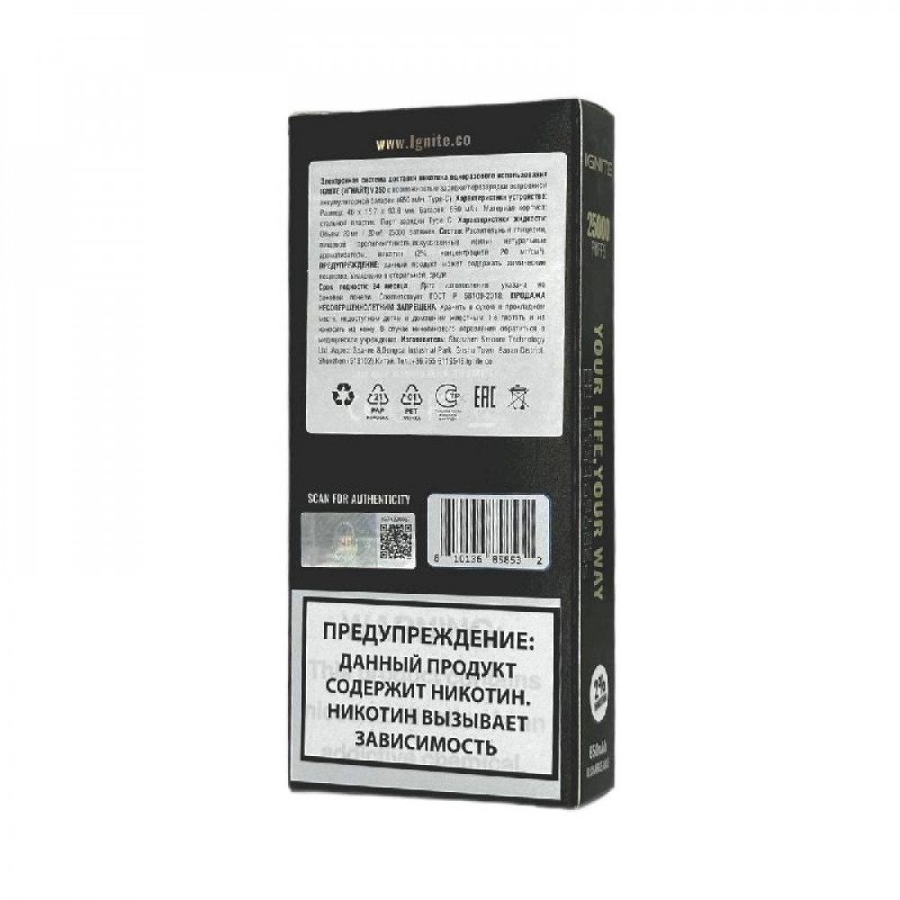 Технические характеристики Электронная сигарета Ignite V250 Gold 25000 - Cactus Lime Soda (Кактус лайм содовая)